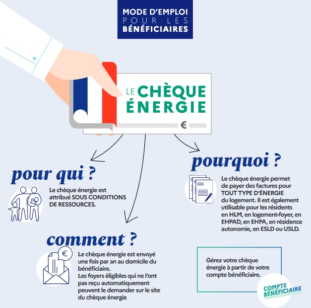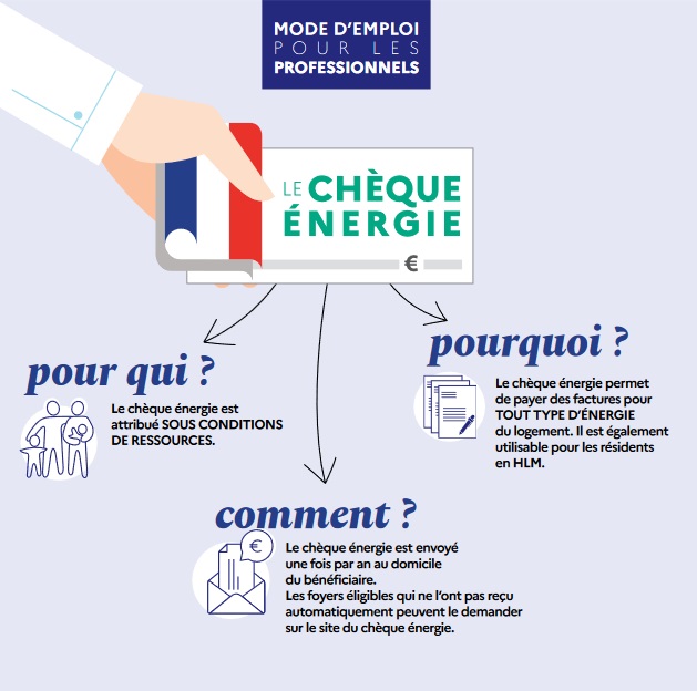 Le chèque énergie est une aide de l’État attribuée aux foyers modestes pour les aider à payer les factures d’énergie de leur logement.